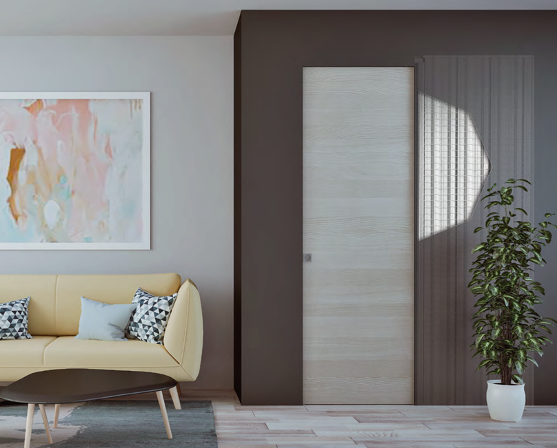 Scrigno es sinónimo de calidad funcional y estética: Essential permite que la puerta llegue a ras del perfil superior, no requiriendo ningún elemento adicional para cubrir el hueco entre la puerta y el travesaño, manteniendo así la estética minimalista que distingue a este producto.